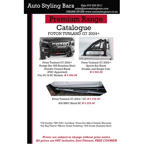 Foton Tunland G7 2024+ Side Steps Single Cab 409 Stainless Steel Powder Coated Black
