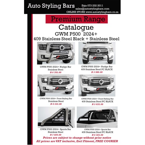 GWM P500 2024+ Sports Bar 409 Stainless Steel Powder Coated Black