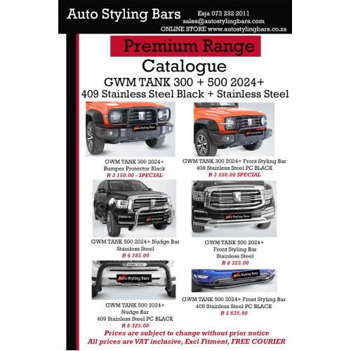 GWM TANK 300 2024+ Bumper Protector 409 Stainless Steel PC Black